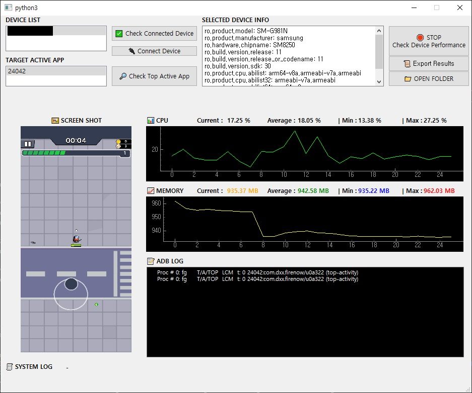 핵심 기능 : AOS 디바이스 성능 측정, IOS 디바이스 성능 측정(구현 중)